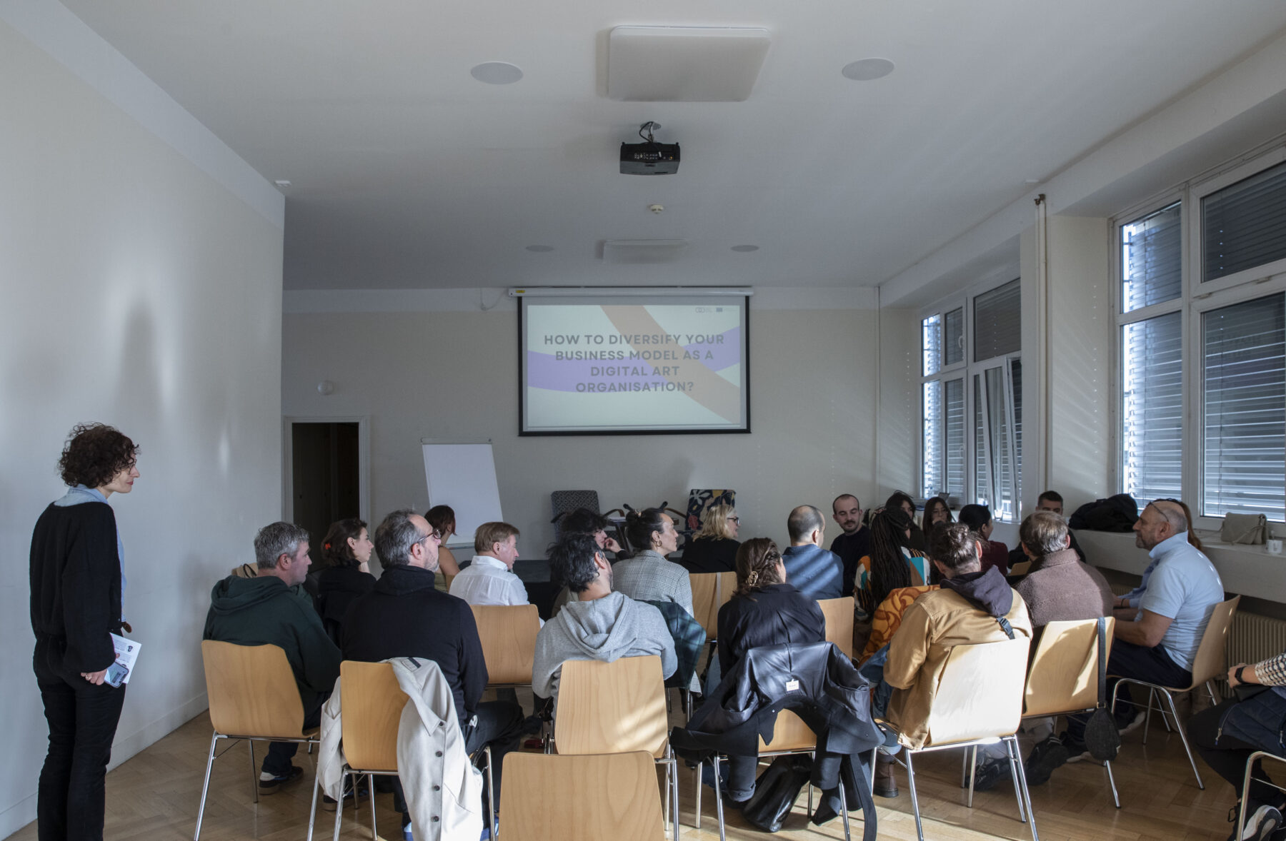 Fort logiquement, la suite du programme s’est concentrée sur les leviers de développement de la filière des arts numériques. Une série de workshops, animés par plusieurs expert·es de la délégation française, a initié une large réflexion. Ilaria Bondavalli, responsable de projets européens à CHRONIQUES et membre de l’étude Digital Inter/Section en 2025 (lire l’article), s’est attachée à la question de la diversification des modèles économiques : “Sponsoring, ticketing, merchandising, événementiels, soutiens publics… Il existe différents types de leviers, mais il faut d’abord questionner sa mission, explique-t-elle. Le meilleur business model est celui qui correspond à son écosystème.” Ce workshop a permis un échange entre pairs et la découverte d’outils concrets comme le Business Model Generator.