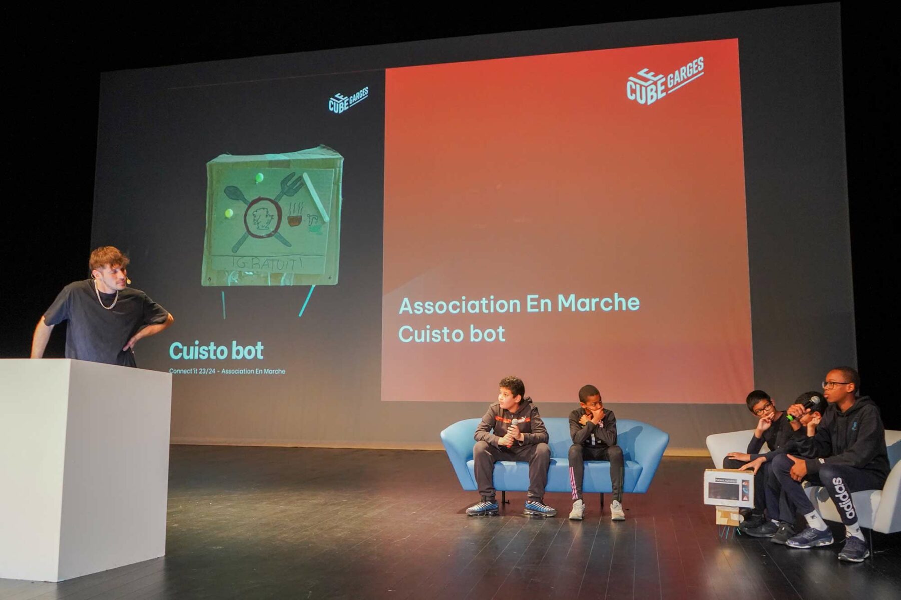 Fabriquer ensemble pour mieux comprendre. Depuis son ouverture en 2023, Le Cube Garges porte auprès des écoles le projet Connect’It, un programme de quatre ateliers sur un mois pour apprendre les bases de la programmation et développer son esprit critique à travers la réalisation d’un projet interdisciplinaire, collectif et concret. « L’approche collaborative encourage la créativité, les idées divergentes et le débat constructif. Les élèves développent des scénarios du futur et se les approprient pour en devenir acteur », présente Lucie Laluque, directrice des pratiques numériques au Cube Garges. En toile de fond, l’écologie et les enjeux de développement durable. Depuis le début du programme, 2400 élèves du CM2 au lycée ont été accompagnés.