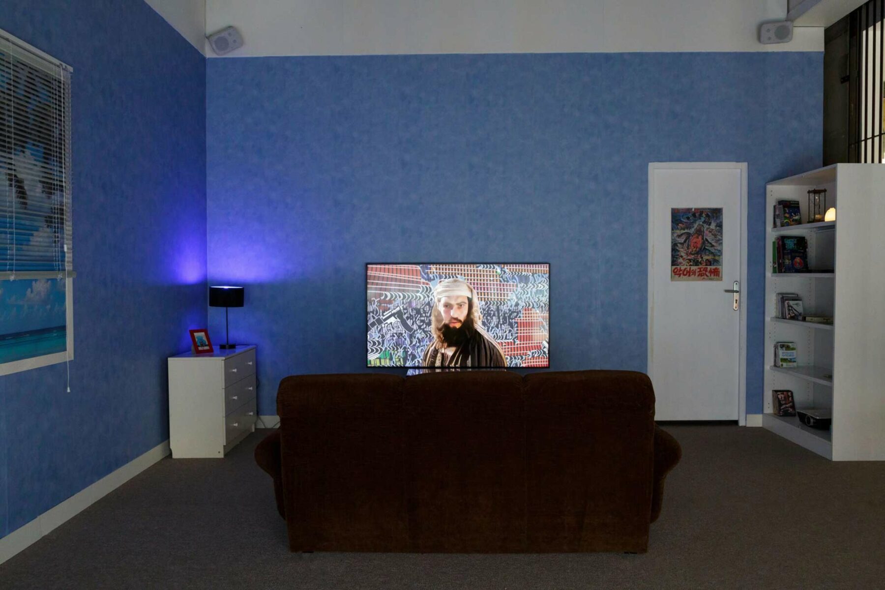 L’Intelligence Artificielle, c’est justement la dernière plateforme d’exploration de l’artiste, une révolution technologique et artistique qui offre autant de nouvelles possibilités qu’elle soulève de problématiques inédites. Bien loin des images lisses et ultra-réalistes que l’on commence tout juste à découvrir ces derniers mois, dans son court métrage Madotsuki_the_dreamer, présentée sous forme d’installation, il puise plutôt dans ce que l’outil peut créer d’inachevé, de grossier : “ce qui m’intéresse avec l’IA c’est de travailler l’informe, l’inconsistant et le polymorphique […] d’arrêter la représentation avant que l’image soit tout à fait formée”. L’outil se révèle idéal pour explorer la multiplicité et l’ambiguïté de Joshua Ryne Golberg, un jeune américain ayant trollé des dizaines de communautés d’Internet dans les années 2010. Il offre également l’opportunité d’aborder les notions d’authenticité sur le web, tout en dévoilant en filigrane les biais potentiels et les lacunes inhérentes au traitement médiatique. Quitte à délaisser complètement la caméra ?