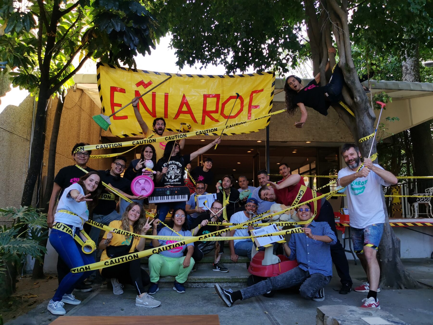 Rien d’étonnant, donc, à voir les contrôleurs alternatifs s’inviter aujourd’hui dans les musées. D’abord comme dispositifs de médiation : “Le gaming apparaît de plus en plus dans les musées scientifiques, comme à la Cité des sciences. On apprend mieux par l’expérience – une pédagogie du faire – que par la simple répétition de discours dogmatiques”, souligne Olivier Mauco. Mais au-delà de la médiation, de plus en plus d’institutions culturelles s’intéressent à ces formes installatives et à leur potentiel expérientiel. L’un des exemples les plus marquants reste Eniarof, événement incontournable, regroupant une quarantaine d’artistes. Imaginé dès 2005 par Antonin Fourneau, Eniarof est inspiré de l’esprit forain. Ici, les attractions prennent la forme de jeux bricolés, d’interfaces absurdes et de dispositifs ludiques interactifs. “On a fêté notre 35e édition en 2025. Eniarof est accueilli par des festivals d’art numérique ou commandés par des villes”, raconte Antonin Fourneau. “Au début, les contrôleurs alternatifs étaient mal perçus, même au sein de la scène jeu vidéo : détourner le retro gaming, ce n’était pas toujours perçu comme un hommage. Aujourd’hui, des structures nouvelles, musées immersifs, lieux hybrides comme Meow Wolf aux États-Unis, s’y intéressent de plus près.”