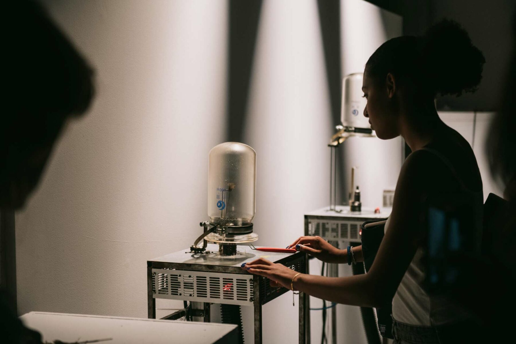 Paul Vivien, artiste et designer membre du collectif OYÉ, expérimente ce changement de paradigme en privilégiant la mutualisation, la réutilisation et la récupération de matériels et de matériaux (comme le bambou et le plexiglas recyclé), dans une logique de réappropriation de la chaîne de fabrication. L’impact écologique est intégré dès la conception et devient partie intégrante de la démarche artistique. Paul Vivien souligne également l’importance de la collaboration et des partages de savoirs, qui nécessitent d’intégrer un temps dédié au sein du processus créatif. Le résultat : des œuvres et dispositifs scénographiques modulables, à faible empreinte environnementale et innovants à la fois dans le processus et dans l’usage.